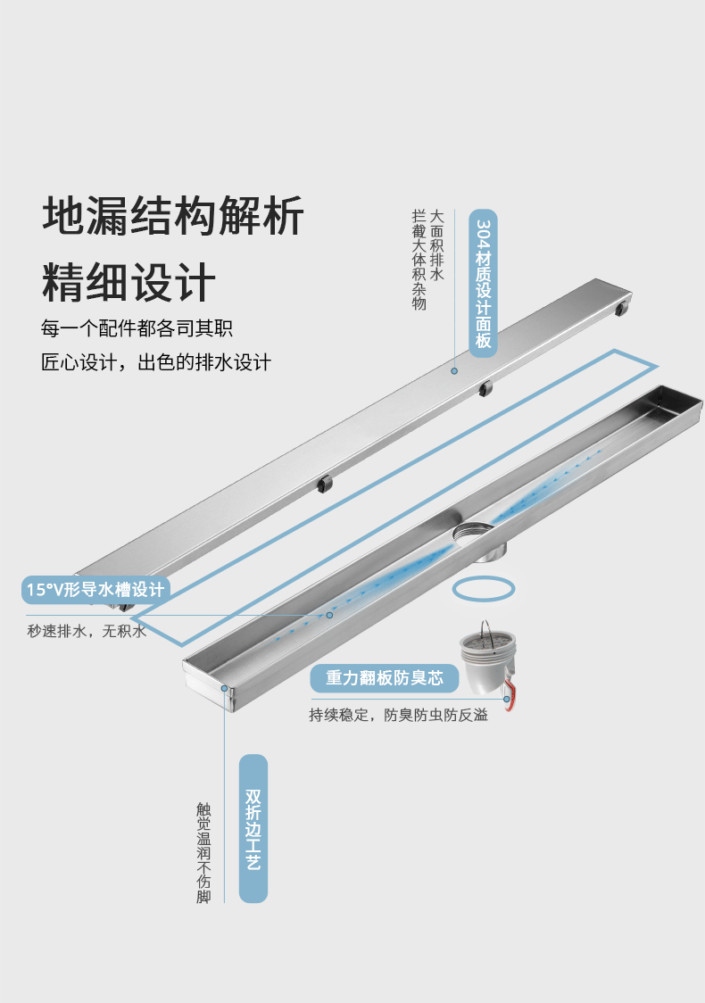 核心工藝:15度V形導水槽設計,秒速排水,創(chuàng)新設計帶來強勁實力;
