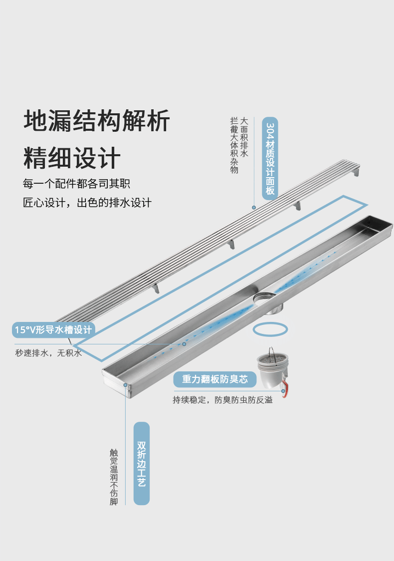 核心工藝:15度V形導(dǎo)水槽設(shè)計,秒速排水,創(chuàng)新設(shè)計帶來強勁實力;
